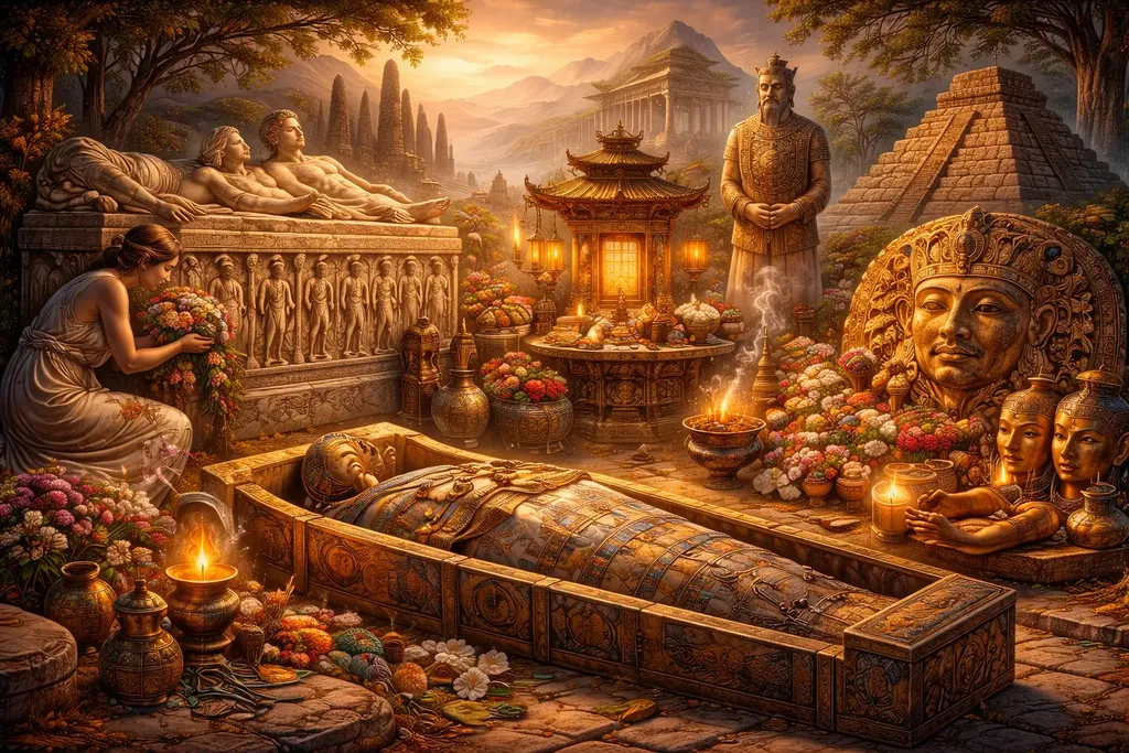 Le tombeau, la stèle, le sarcophage, la peinture murale, le masque funéraire, l’effigie, l’objet déposé auprès du mort ou l’architecture de la sépulture ne doivent donc jamais être considérés comme de simples compléments. Ils forment un véritable langage. Ils disent comment une société pense la personne, la survie, le souvenir, le prestige, la présence des ancêtres et le destin posthume.
