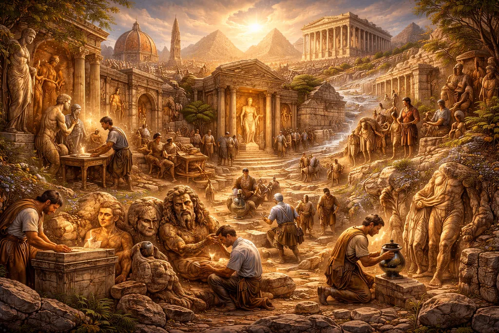 古代芸術におけるイメージの物語を学んだあと、いま私たちは新たな段階へ進まなければなりません。すなわち、古代そのものの後に古代美術がどうなるのかを理解することです。ある文明は、その歴史的時代が終わったからといって完全に消滅するわけではありません。その形態、技法、図像、モチーフ、記念物、視覚的理念、そして可視世界を組織する方法は、生き残り、流通し、忘れられ、変形され、再発見され、称賛され、模倣され、あるいは否定されることがあります。