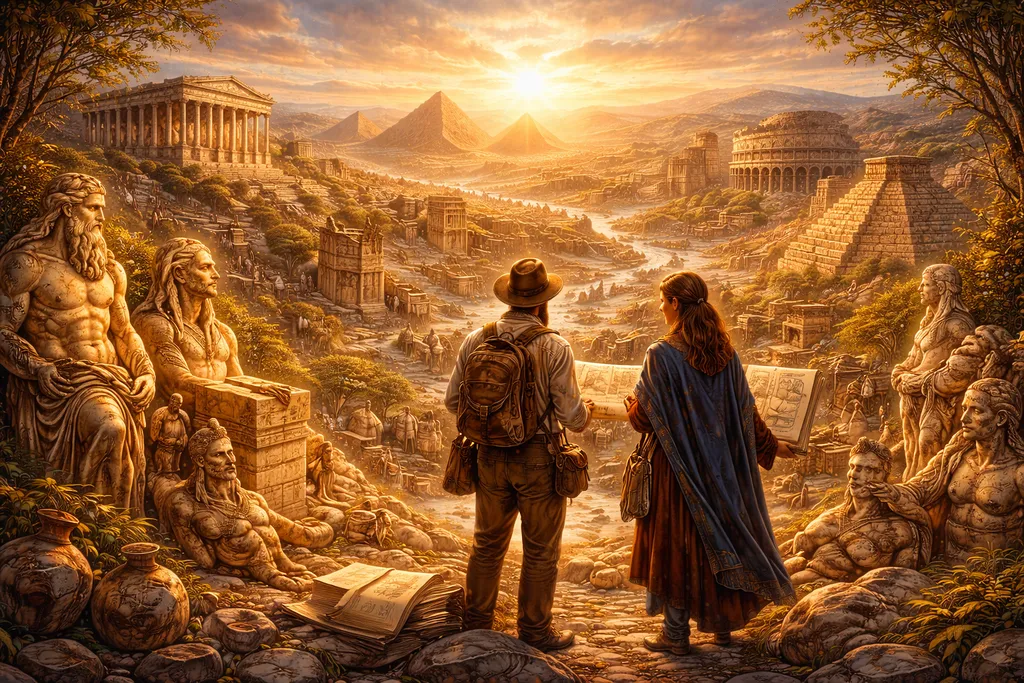 古代は、もはや単なる遠い始まりとしてではなく、形、信仰、権力、物語、記憶の巨大な実験室として現れます。それは、あるイメージがどこから来るのかを教えるだけではありません。何よりも、それはイメージが決してただ示すものだけではないことを認識させてくれます。イメージとは、伝えるもの、守るもの、秩序づけるもの、現前させるもの、信じさせるもの、思い出させるもの、そして見させるものでもあるのです。